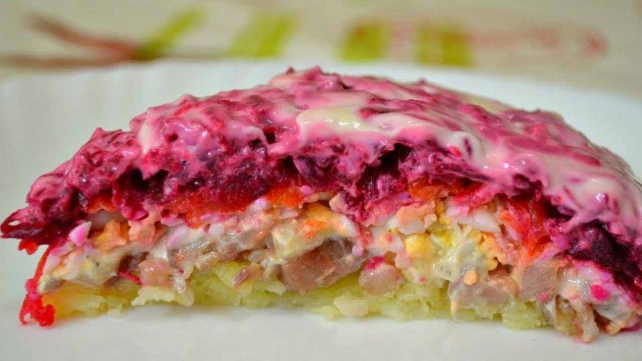Представьте салат с бархатистой, обволакивающей текстурой, где каждый слой тает во рту. Вкус — это гармоничный дуэт слабосоленой сельди и легкой дымной нотки копченого сыра, который оттеняет свежесть зеленого лука и маринованных огурцов. Завершает картину сочный хруст зеленого горошка, добавляя яркий цвет и сладковатый акцент.