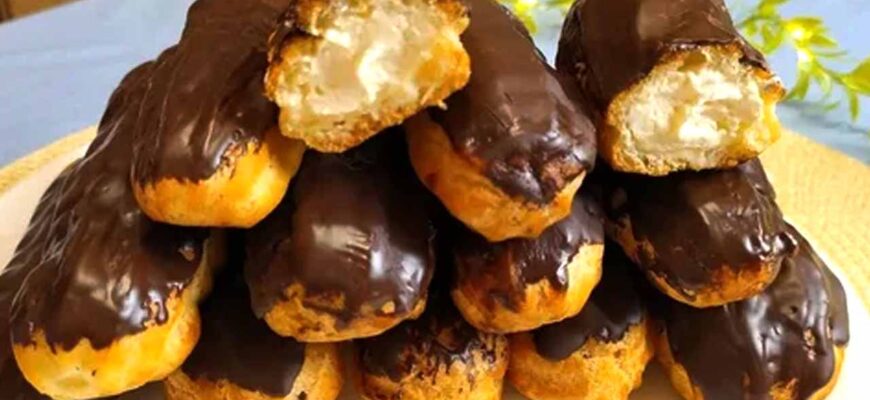 Представьте хрустящую золотистую оболочку, которая с легким треском поддается при надкусывании. Внутри вас ждет бархатистая, нежная и прохладная начинка со вкусом ванили и сыра маскарпоне. Сверху этот десерт покрыт гладкой, блестящей шоколадной глазурью, которая тает во рту, создавая идеальный баланс сладости.