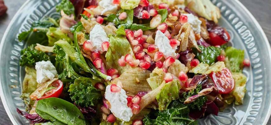 На столе перед вами окажется эффектное блюдо: рубиновые дольки свеклы, золотистые орехи, темные финики и кремовый сыр на зеленой подушке. Подавайте его сразу, как самостоятельную сытную закуску или легкий ужин с хрустящим хлебом. Этот салат безупречно дополнит праздничное меню, не требуя от вас многочасовой готовки.