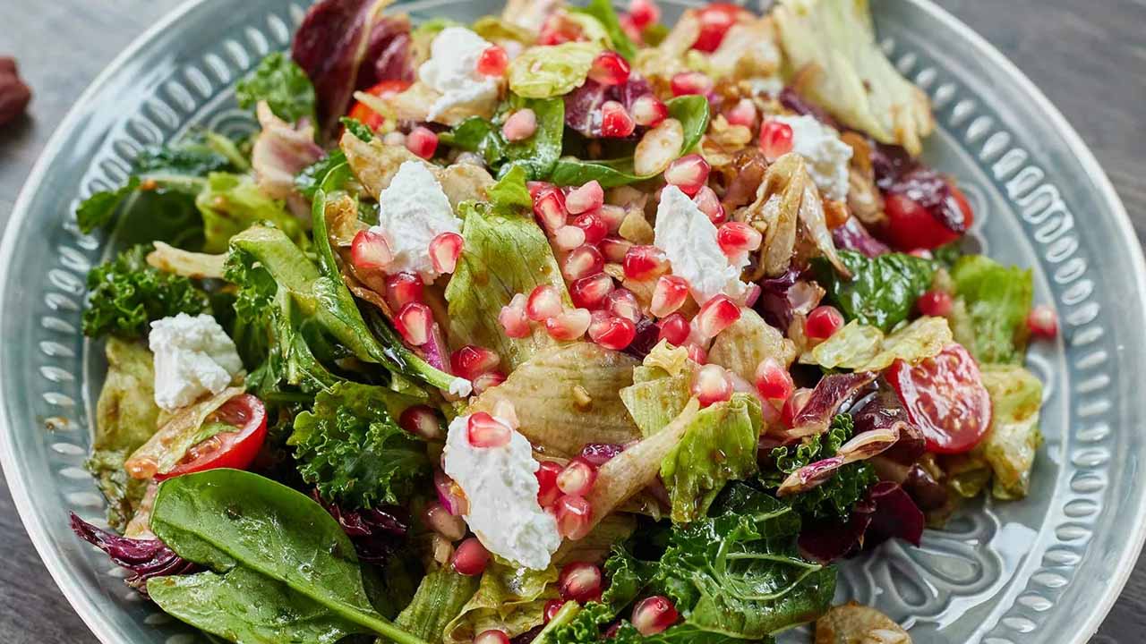 Этот салат — как текстурная симфония и игра контрастов. Сладкая, бархатистая запеченная свекла буквально тает во рту. Ее дополняют мягкие, словно карамель, финики и хрустящие, ароматные грецкие орехи. Все это объединяет нежный, с легкой кислинкой козий сыр, а яркая заправка на основе горчицы и меда добавляет пикантности и свежести.