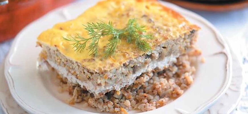 Это блюдо — вариация старинного крупеника, запеканки из гречневой каши, известной в русской кухне не одно столетие. Классический вариант часто был сладким, с творогом, но наша версия — сытная, пикантная, идеальная для современного ужина. Она выручит, когда хочется чего-то основательного, но нет времени на сложные манипуляции.