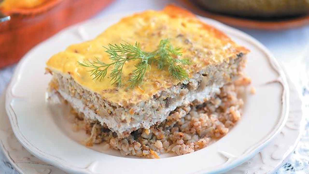 Это блюдо — вариация старинного крупеника, запеканки из гречневой каши, известной в русской кухне не одно столетие. Классический вариант часто был сладким, с творогом, но наша версия — сытная, пикантная, идеальная для современного ужина. Она выручит, когда хочется чего-то основательного, но нет времени на сложные манипуляции.