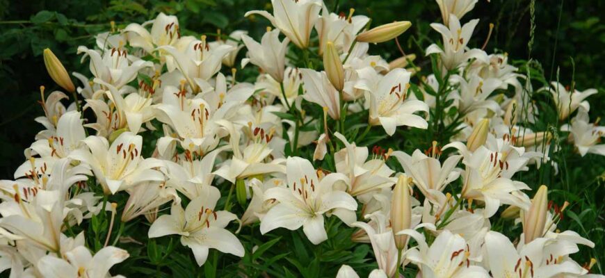 Их лучше сажать на 18-20 сантиметров. Глубокая посадка — это страховка от поздних заморозков, устойчивость мощного стебля и развитие крепких корней. Если посадить мелко, лилия может упасть от ветра, цветы измельчают, а зимой луковица вымерзнет.
