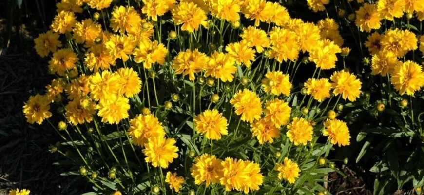 - Лето. Тут правят энотера и вербейник точечный. Энотера раскрывает цветы ближе к закату и выглядит очень нежно, а вербейник даёт жёлтые «свечки». И обязательно посадите кореопсис мутовчатый. Он создаёт ажурный кустик, усыпанный мелкими цветками, и цветёт всё лето без всякого ухода.