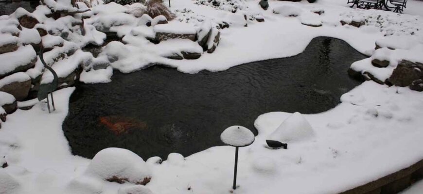 Осенью главное — защита от листвы. Лучший способ — натянуть над прудом сетку. Теплолюбивые кувшинки, если пруд мелкий, лучше достать и убрать в подвал. Насосы и фильтры нужно вытащить, почистить и убрать до весны.