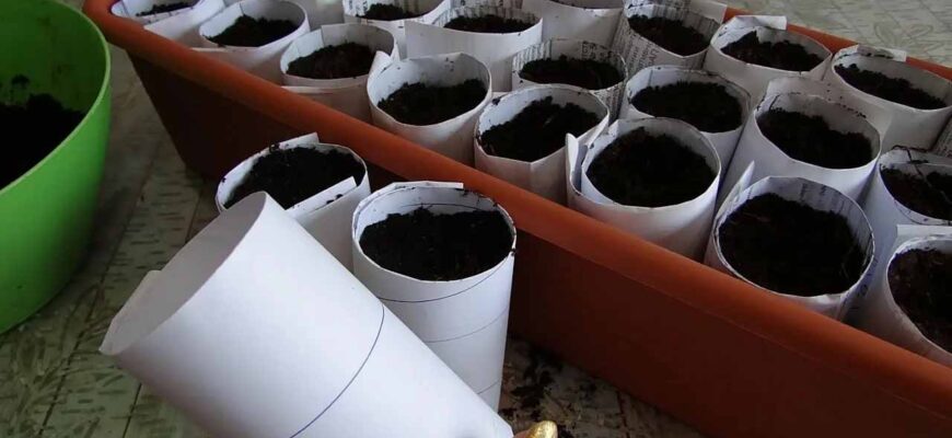 С газетами придется повозиться: намотать на бутылку в несколько слоев, донышко заклеить крахмальным клейстером. Но если есть время и желание — тоже хороший вариант. Только поливать такие стаканчики нужно обязательно через поддон, чтобы они раньше времени не раскисли.