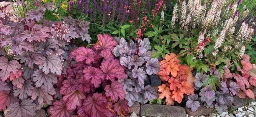 Некоторые гейхеры за сезон меняют окрас по несколько раз. С ними цветник никогда не выглядит скучно.