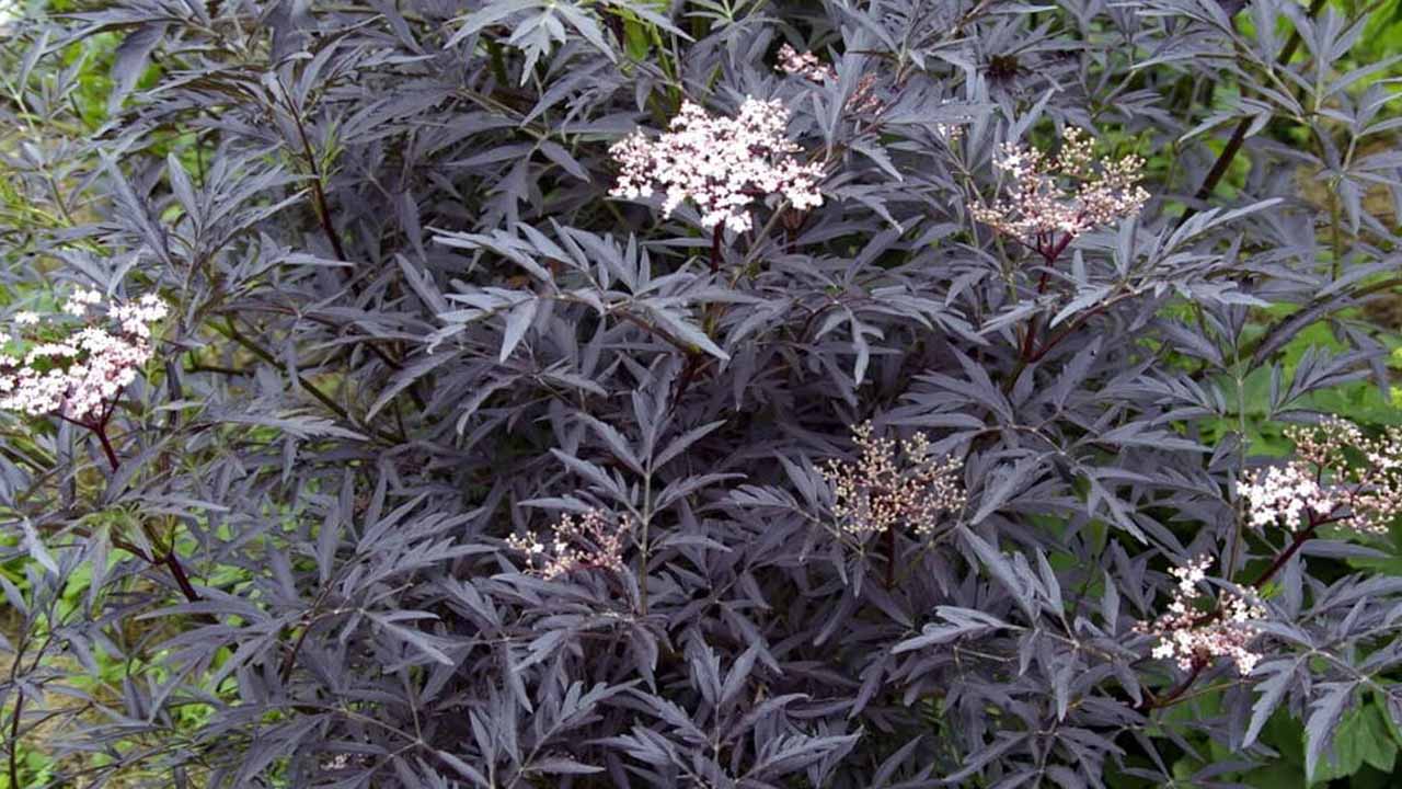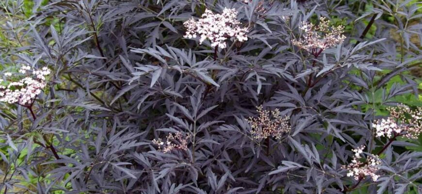 Если позволяет место, обратите внимание на листопадные кустарники. Бузина черная интересна не только съедобными ягодами, но и сортами с темной листвой. Сорт ‘Black Lace’ (Черное кружево) полностью оправдывает свое название. Его рассеченные пурпурно-черные листья выглядят невероятно ажурно, а цветки пахнут лимоном. Полная противоположность — сорт ‘Black Tower’ (Черная башня). Он отличается прямыми побегами и крупными зубчатыми листьями. Весной и летом они насыщенного фиолетово-черного цвета, а к осени становятся красно-коричневыми.