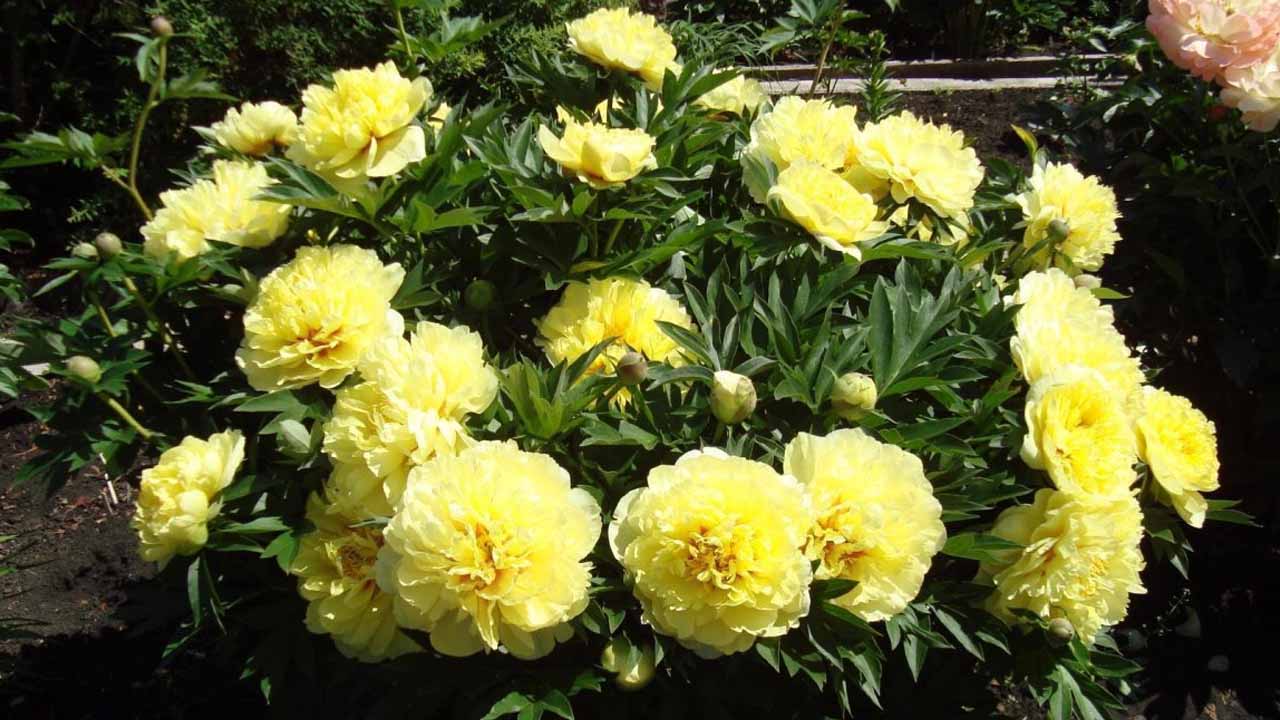 Бартзелла. Самая известная звезда среди ИТО-гибридов. Это куст высотой до метра с мощными стеблями. Цветет с середины июня около месяца. Полумахровые цветки (15–25 см) имеют насыщенный лимонно-желтый цвет с легкими красными штрихами в центре. Сорт выдерживает морозы до -35°C и почти не болеет.