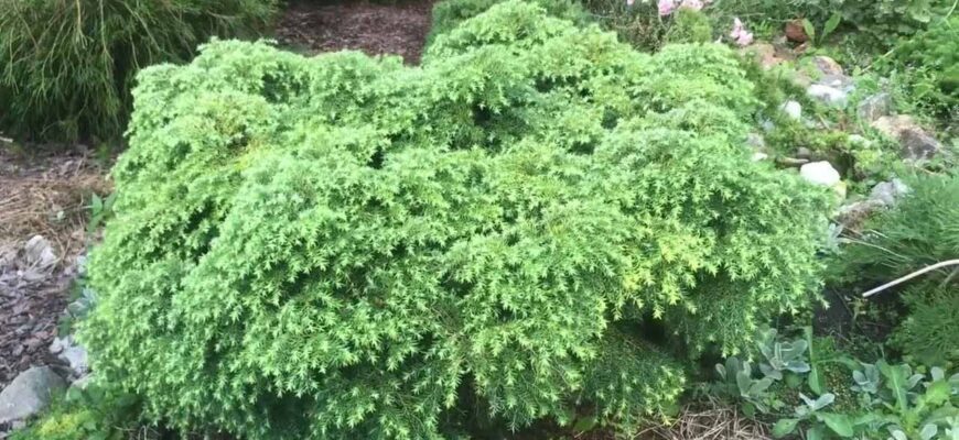 - ‘Jeddeloh’ (‘Джедделох’): растение с рыхлой, ажурной кроной конической формы, высотой до 1,5–2 м. Весной концы побегов становятся кремово-белыми, к осени зеленеют, а затем темнеют до густо-зелёного. Особенно хорош для тенистых мест.